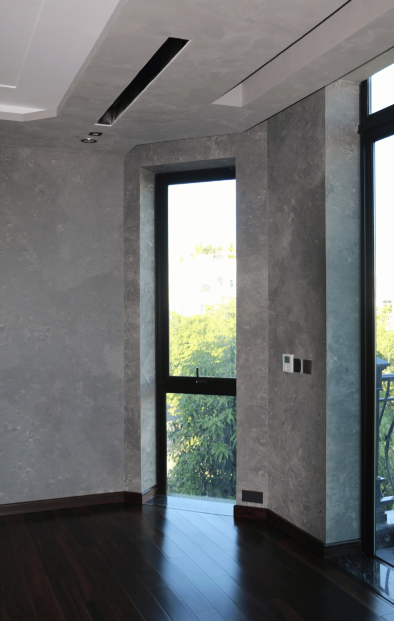 Gia chủ lựa chọn dòng sản phẩm sơn hiệu ứng bê tông với tone màu vàng ánh kim độc lạ, mang đến một không gian quý phái, đẳng cấp. Màu sơn hiệu ứng được Bcolor phối màu riêng để phù hợp với mong muốn của khách hàng.